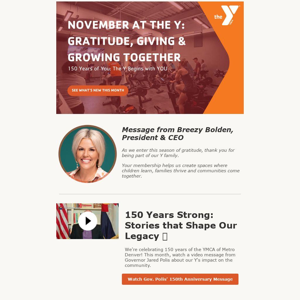 We're celebrating 150 years of the YMCA of Metro Denver! This month, watch a video message from Governor Jared Polis about our Y's impact on the community.