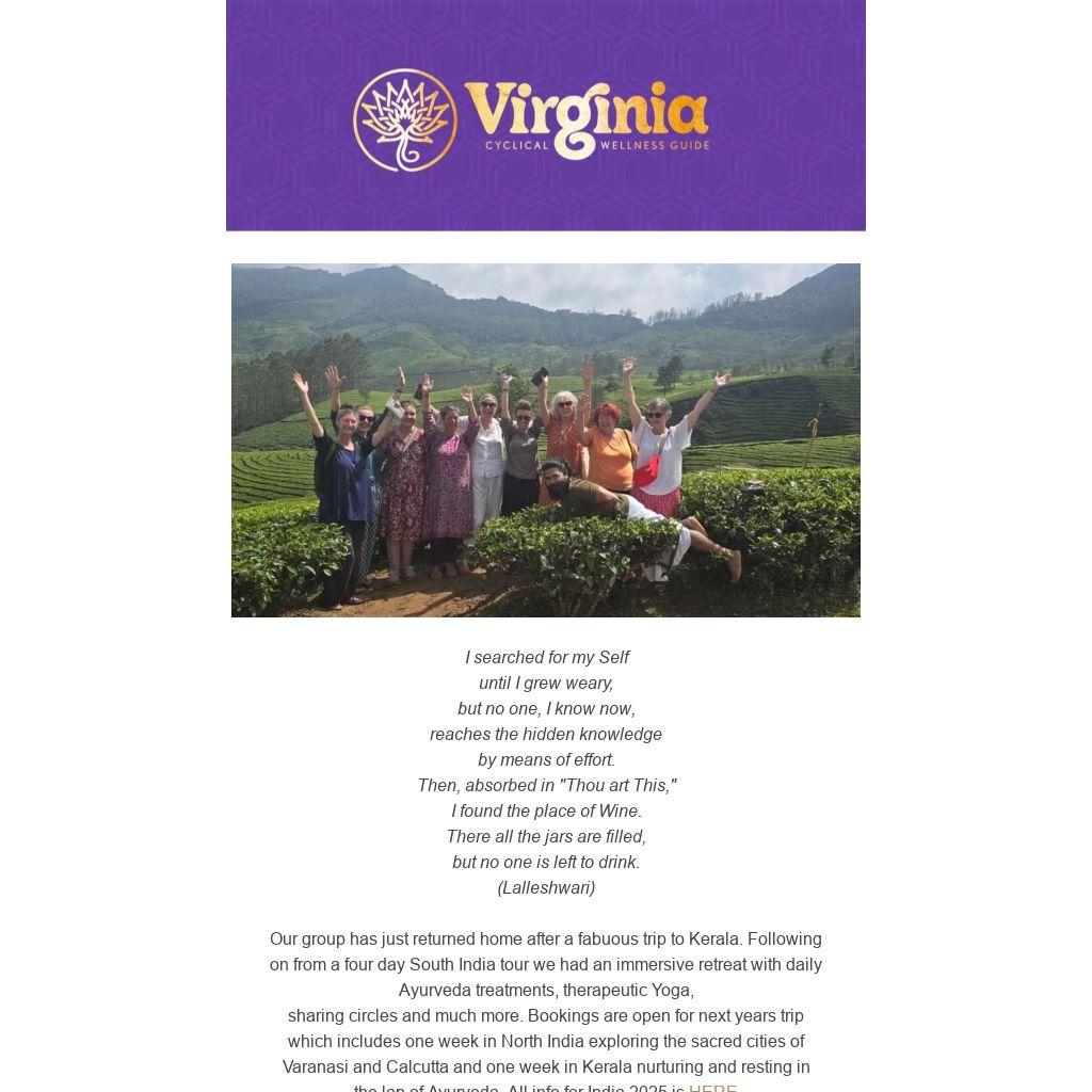 sharing circles and much more. Bookings are open for next years trip which includes one week in North India exploring the sacred cities of Varanasi and Calcutta and one week in Kerala nurturing and resting in the lap of Ayurveda. All info for India 2025 is HERE