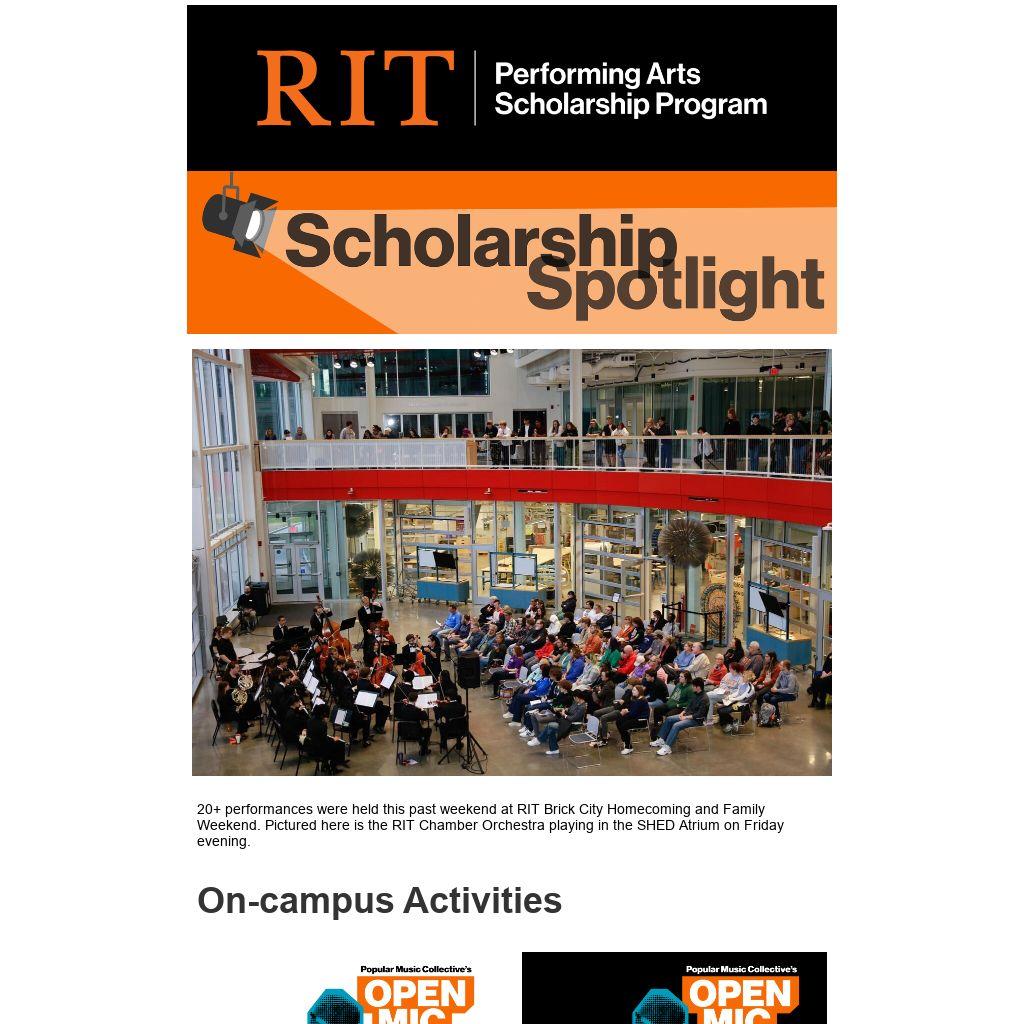 20+ performances were held this past weekend at RIT Brick City Homecoming and Family Weekend. Pictured here is the RIT Chamber Orchestra playing in the SHED Atrium on Friday evening.