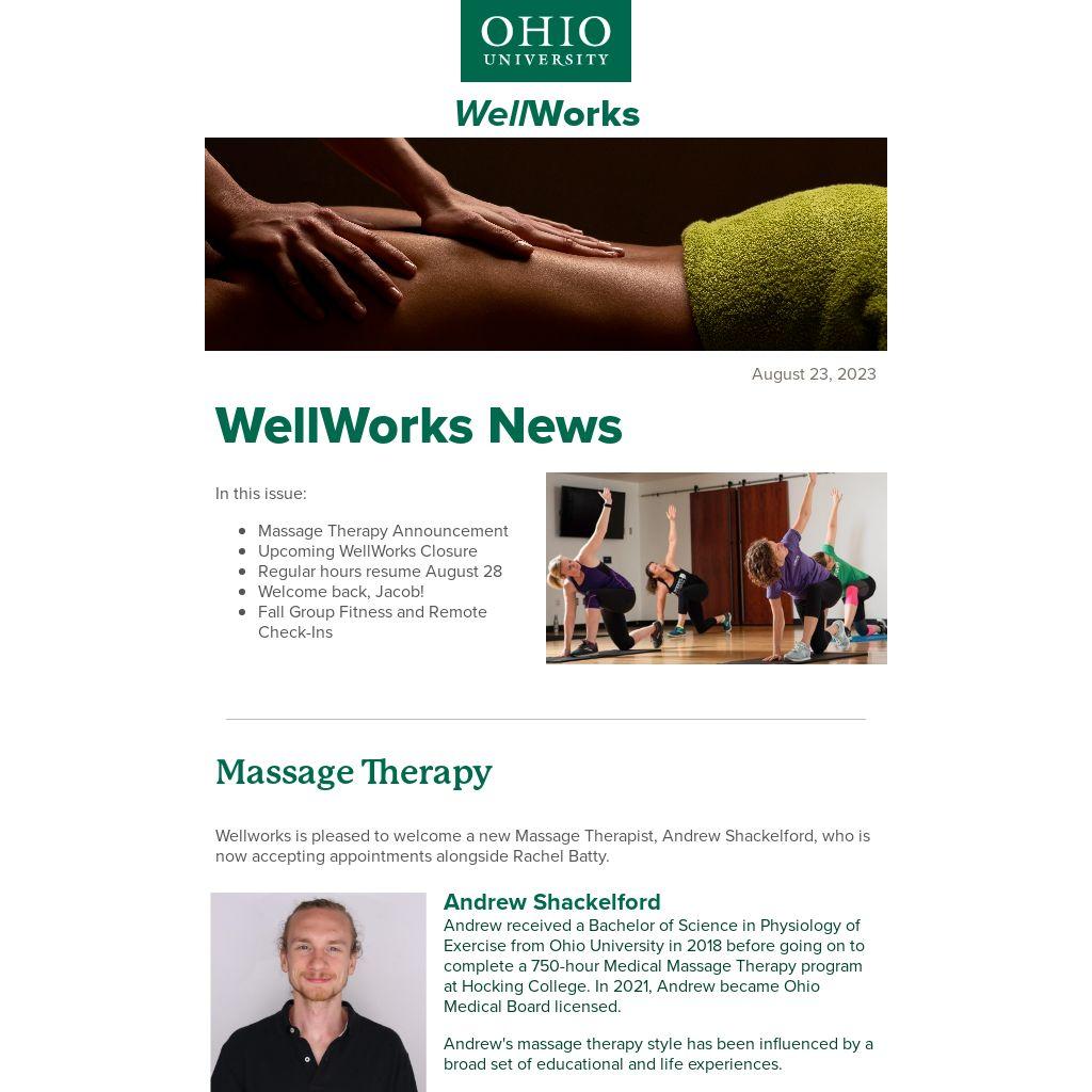 Wellworks is pleased to welcome a new Massage Therapist, Andrew Shackelford, who is now accepting appointments alongside Rachel Batty.