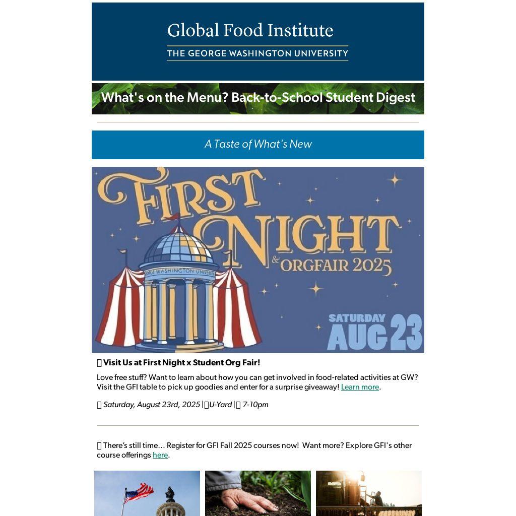 We want to lift up your work and share information about events, opportunities to collaborate or whatever you think is important to share. Email us at globalfoodinstitute@gwu.edu.