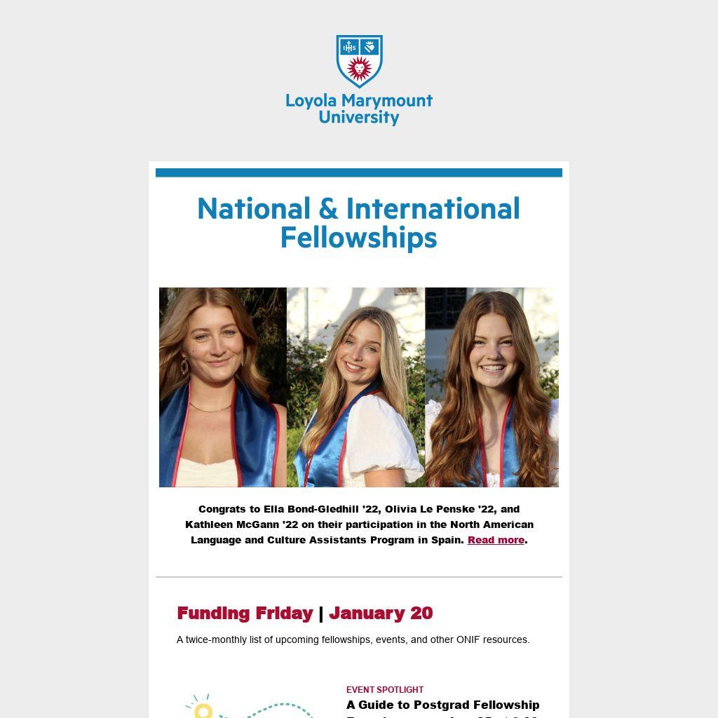 A twice-monthly list of upcoming fellowships, events, and other ONIF resources.