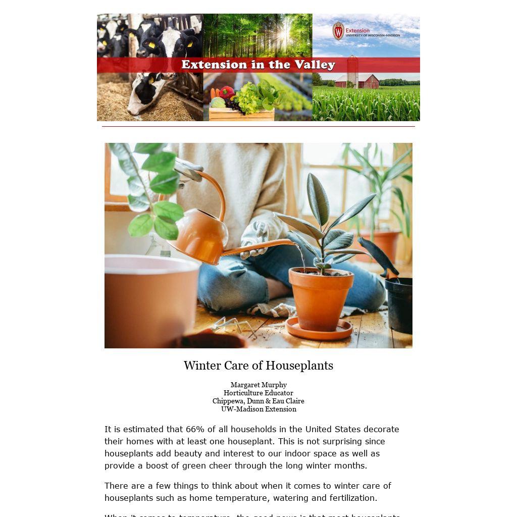 There are a few things to think about when it comes to winter care of houseplants such as home temperature, watering and fertilization.