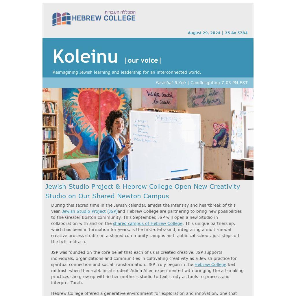 “We are honored and inspired to partner with JSP and to launch a new Boston studio here on the Hebrew College shared campus. Faithful creativity is at the heart of our shared work," said Hebrew College President, Rabbi Sharon Cohen Anisfeld. "In a time of narrowing imagination, JSP invites us to explore the untapped possibilities that live within us, to experience the sheer joy of creativity, and to listen deeply for the layered resonance of ancient words. We are excited to see the ways in which this JSP-Hebrew College partnership opens new doors of possibility for our community.”