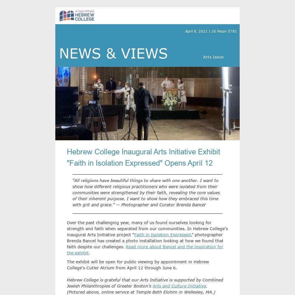 Hebrew College Inaugural Arts Initiative Exhibit "Faith in Isolation Expressed" Opens April 12