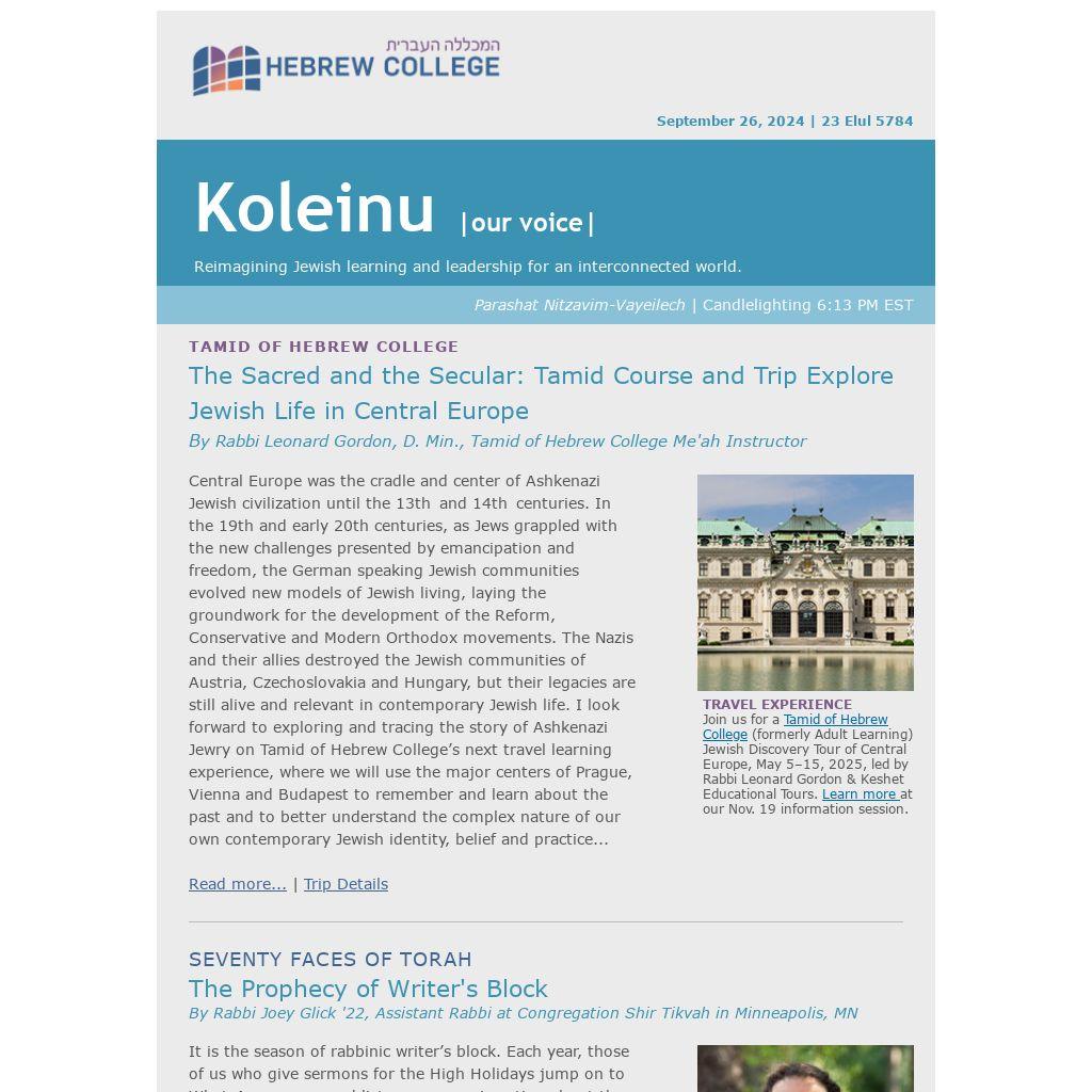 Join us for a Tamid of Hebrew College (formerly Adult Learning) Jewish Discovery Tour of Central Europe, May 5–15, 2025, led by Rabbi Leonard Gordon & Keshet Educational Tours. Learn more at our Nov. 19 information session.