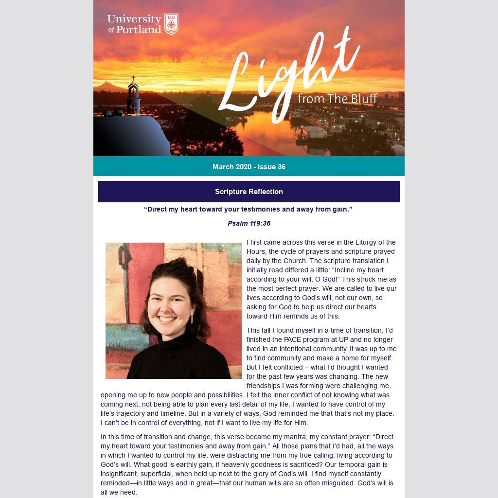This fall I found myself in a time of transition. I’d finished the PACE program at UP and no longer lived in an intentional community. It was up to me to find community and make a home for myself. But I felt conflicted – what I’d thought I wanted for the past few years was changing. The new friendships I was forming were challenging me, opening me up to new people and possibilities. I felt the inner conflict of not knowing what was coming next, not being able to plan every last detail of my life. I wanted to have control of my life’s trajectory and timeline. But in a variety of ways, God reminded me that that’s not my place. I can’t be in control of everything, not if I want to live my life for Him.