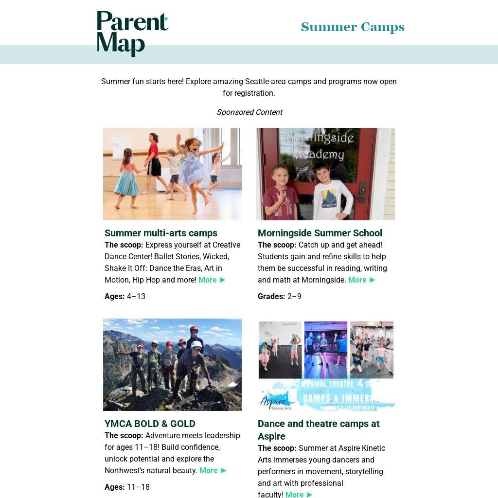 The scoop: STEAM projects and outdoor fun, a.m. and p.m. extended care. Enroll by Feb. 28 for $50 off per week. Use PARENTMAP25 to save an extra $25 per week! More ►
