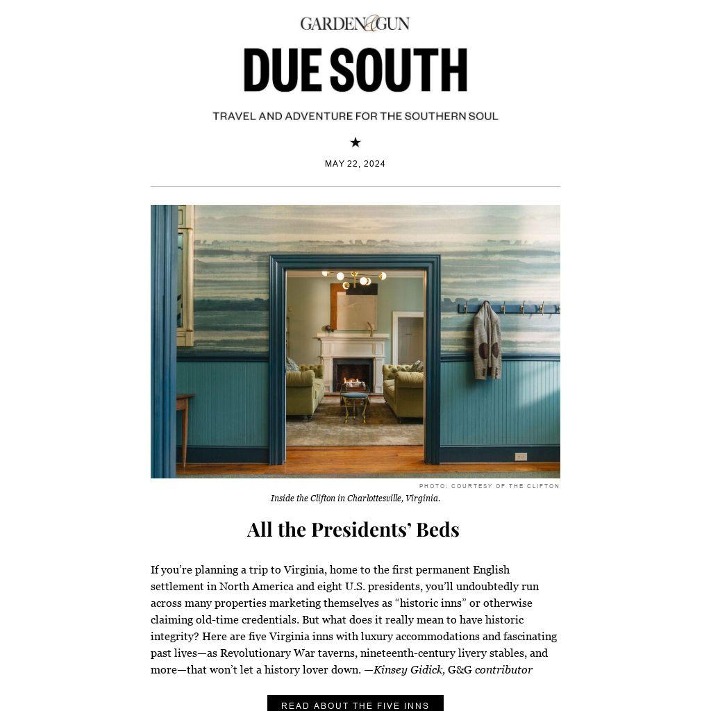 If you’re planning a trip to Virginia, home to the first permanent English settlement in North America and eight U.S. presidents, you’ll undoubtedly run across many properties marketing themselves as “historic inns” or otherwise claiming old-time credentials. But what does it really mean to have historic integrity? Here are five Virginia inns with luxury accommodations and fascinating past lives—as Revolutionary War taverns, nineteenth-century livery stables, and more—that won’t let a history lover down. —Kinsey Gidick, G&G contributor