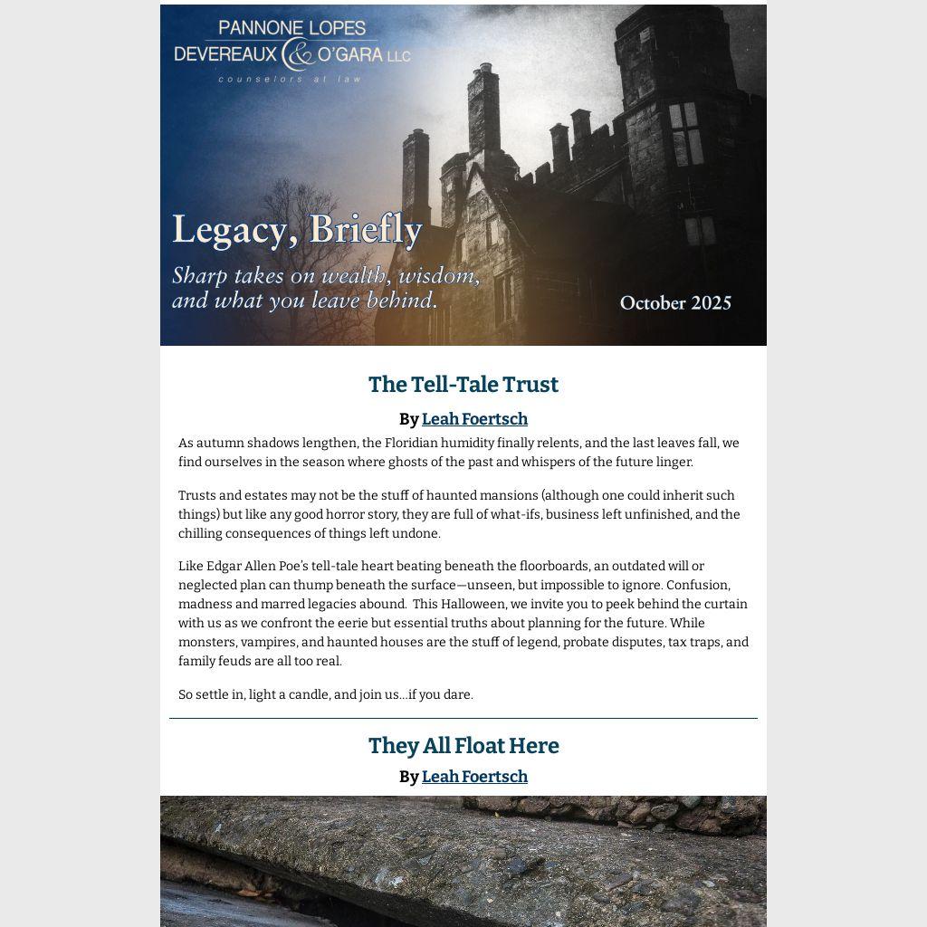 As the jack-o’-lanterns dim and the last piece of candy is eaten, we’re reminded that the most frightening tales are not those of ghosts and goblins, but of families left unprepared, of legacies unsettled, and of voices that can no longer speak for themselves. In this choose-your-own-adventure, however, you are in the driver’s seat. Use your estate plan to bring clarity, provide guidance, and communicate the family values you have sought to instill. Consider what stories your own legacy will tell- and make sure you are planning for it. As the nights grow long, dust off the estate planning folder, call up your lawyer, and find out whether the future you planned is in agreement with the future you are creating.