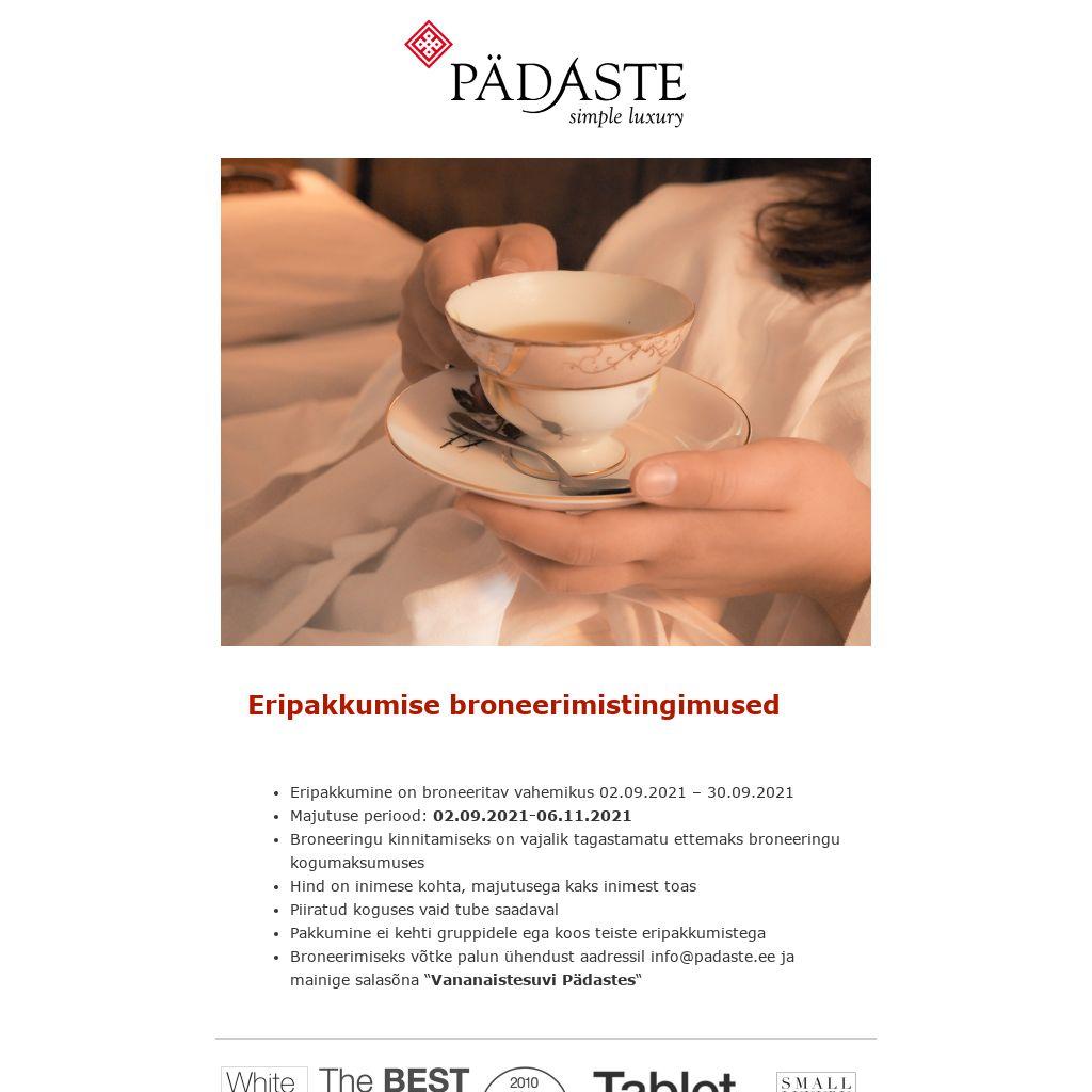 - Broneerimiseks võtke palun ühendust aadressil info@padaste.ee ja mainige salasõna “Vananaistesuvi Pädastes“