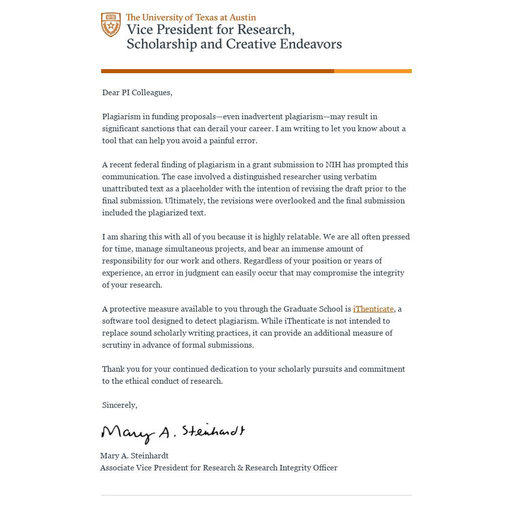 Plagiarism in funding proposals—even inadvertent plagiarism—may result in significant sanctions that can derail your career. I am writing to let you know about a tool that can help you avoid a painful error.
