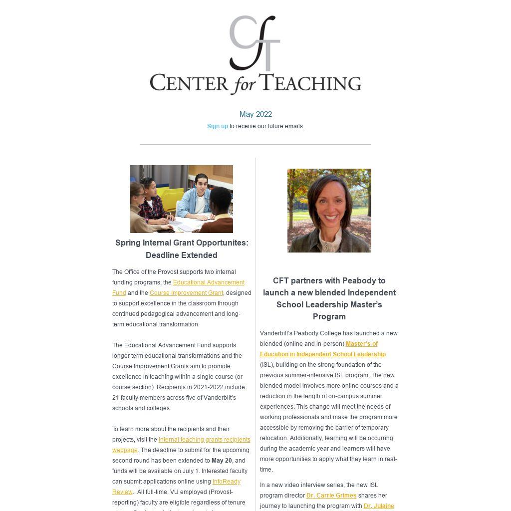 Any additional questions about these two programs can be directed to Cynthia Brame, associate director of the Center for Teaching.