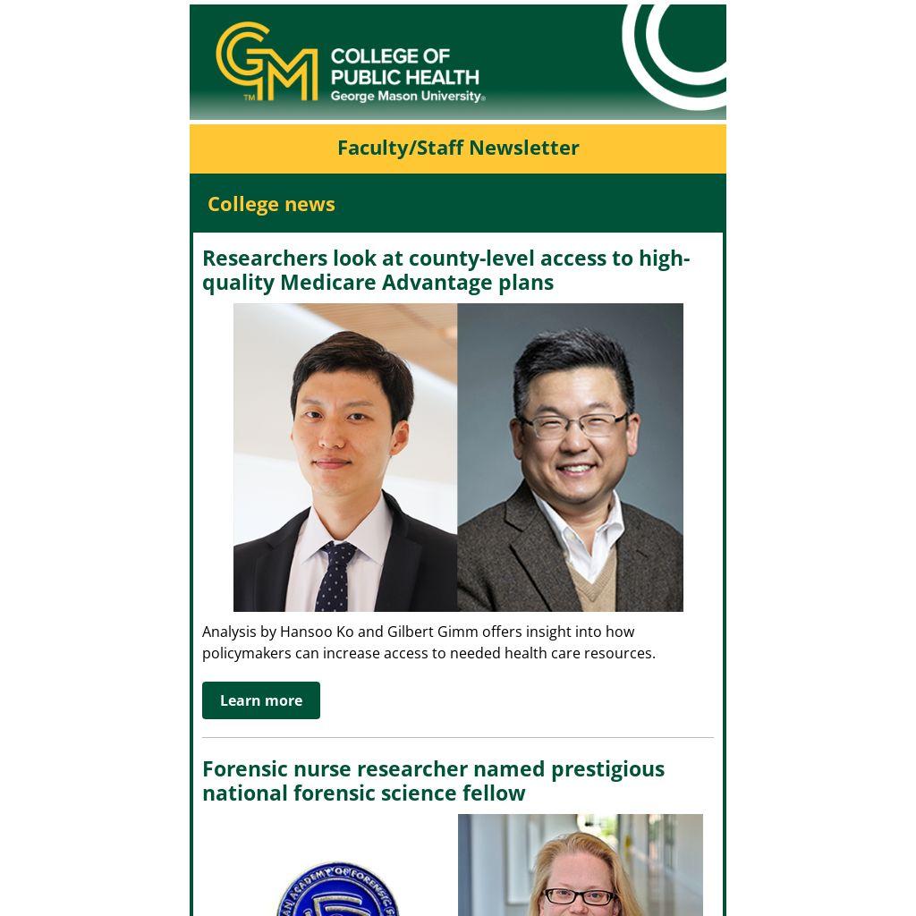 You should have received an email from the Dean late last week reminding you to complete the survey. The Dean intends to utilize the survey results to guide our College strategies going forward. She is committed to working with our academic leaders to support opportunities identified through the survey results to enhance the faculty’s work experience within CPH. As we work to strengthen the faculty experience at George Mason, we need this level of specificity regarding faculty issues. Your participation is appreciated.