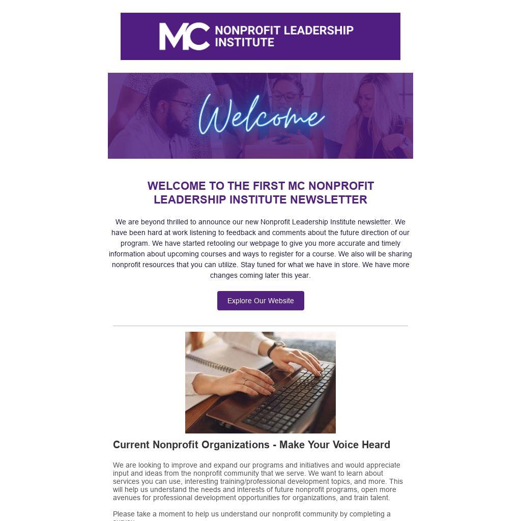 WELCOME TO THE FIRST MC NONPROFIT LEADERSHIP INSTITUTE NEWSLETTER
