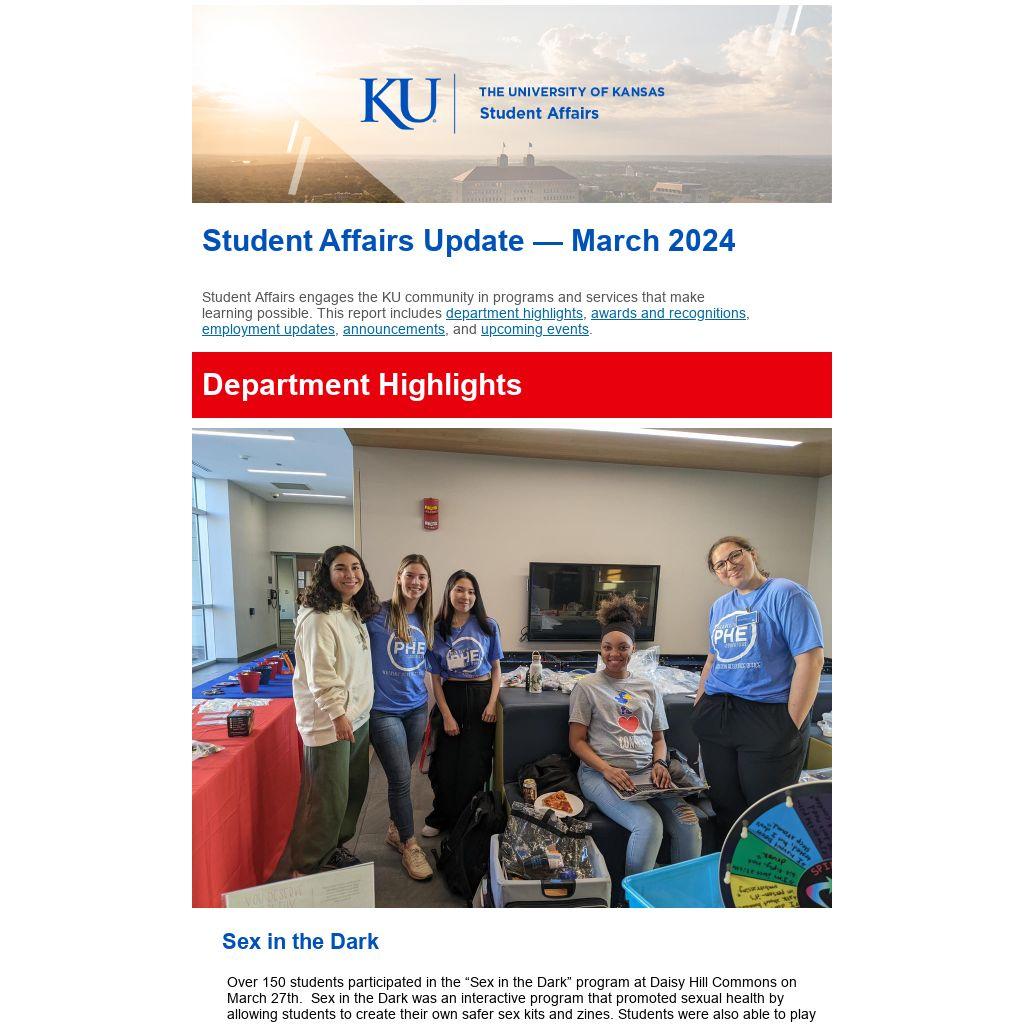 Provided 1,089 counseling appointments to 653 students, increases of 5.5% and 18.3%, respectively, from March 2023.1
