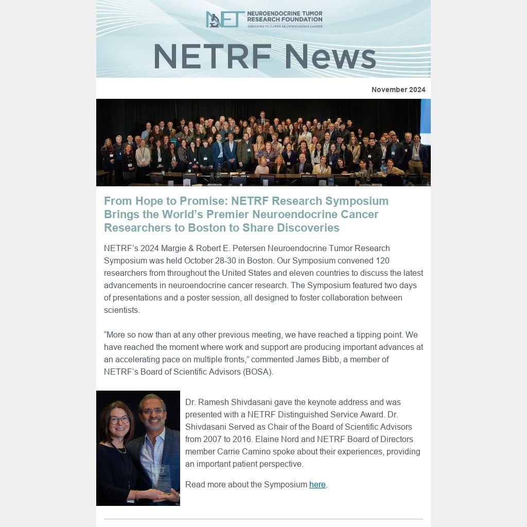 From Hope to Promise: NETRF Research Symposium Brings the World’s Premier Neuroendocrine Cancer Researchers to Boston to Share Discoveries |