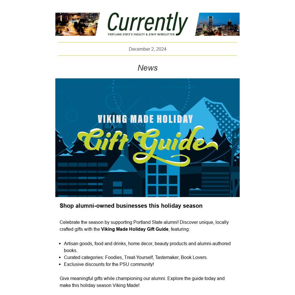 Celebrate the season by supporting Portland State alumni! Discover unique, locally crafted gifts with the Viking Made Holiday Gift Guide, featuring: