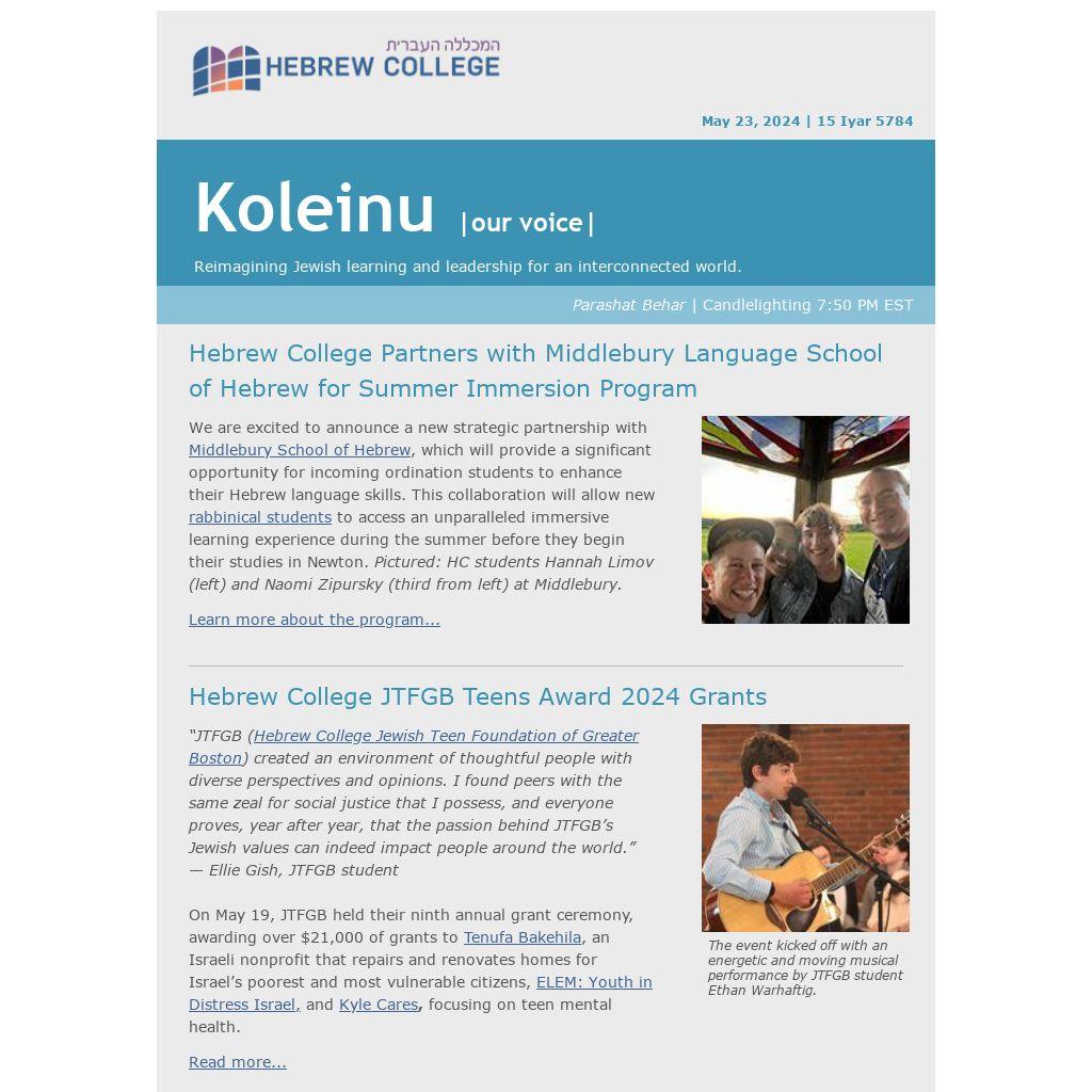 Hebrew College Partners with Middlebury Language School of Hebrew for Summer Immersion Program