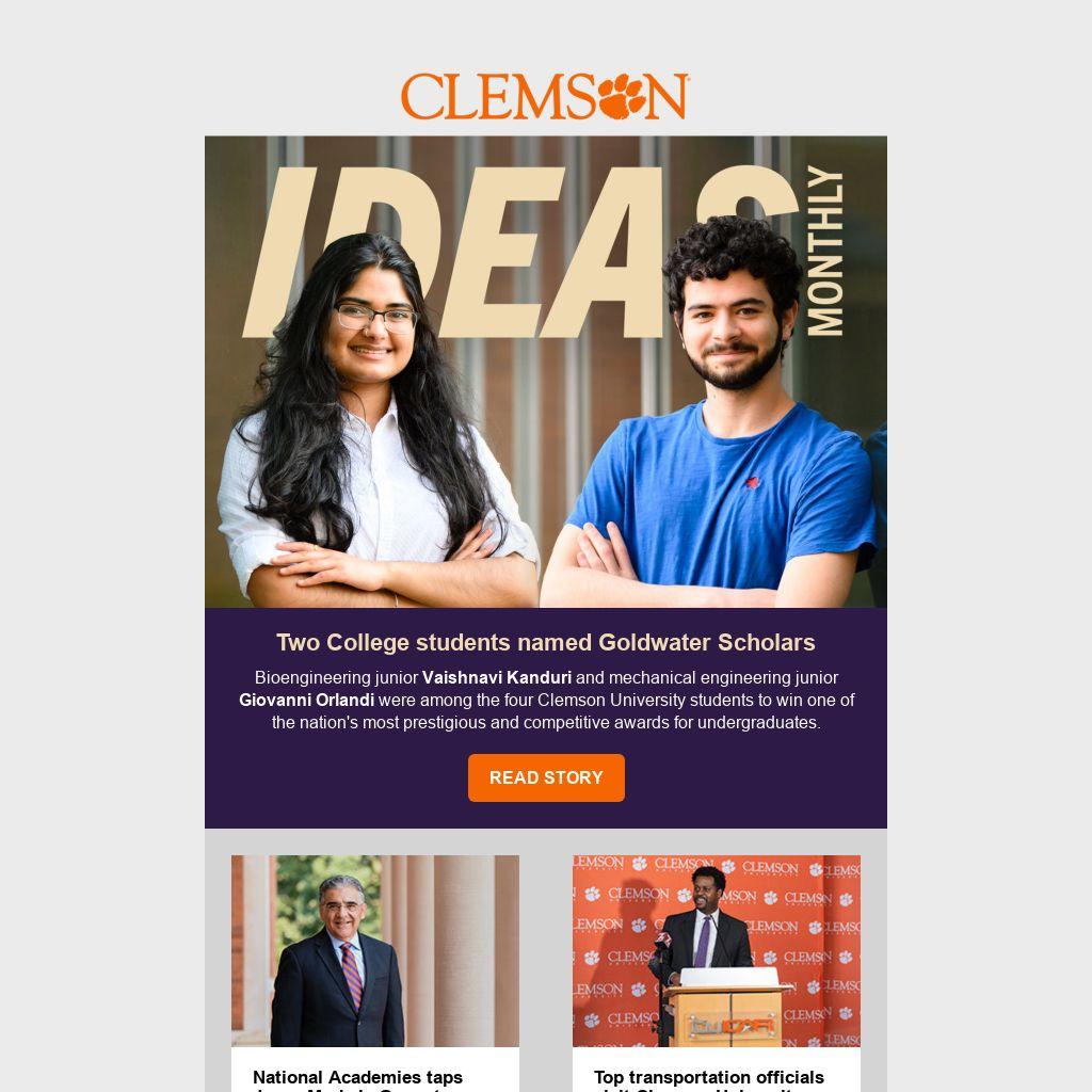IDEAS Monthly is published by the PROMO Office in Clemson University’s College of Engineering, Computing and Applied Sciences. Contact the team with feedback or story suggestions.