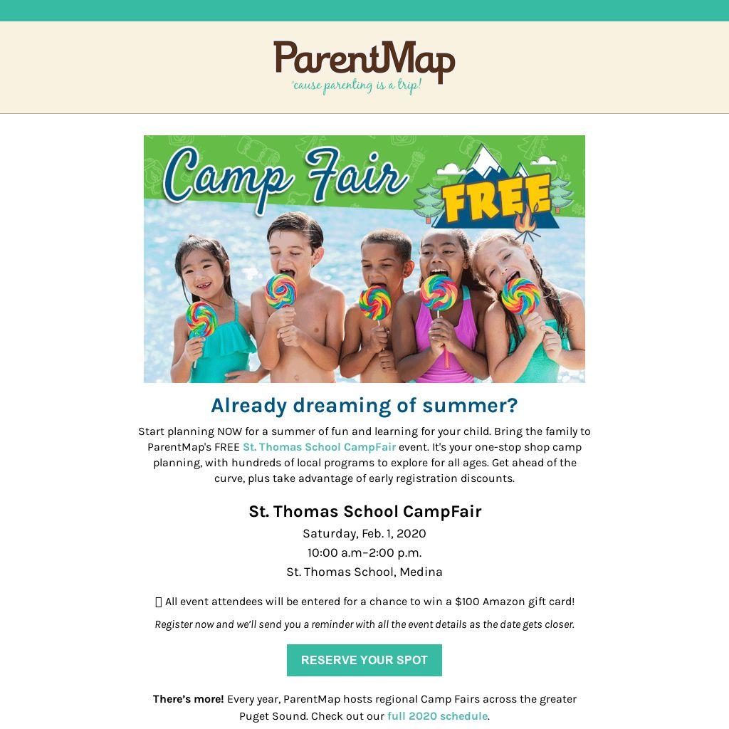 Start planning NOW for a summer of fun and learning for your child. Bring the family to ParentMap's FREE St. Thomas School CampFair event. It's your one-stop shop camp planning, with hundreds of local programs to explore for all ages. Get ahead of the curve, plus take advantage of early registration discounts.