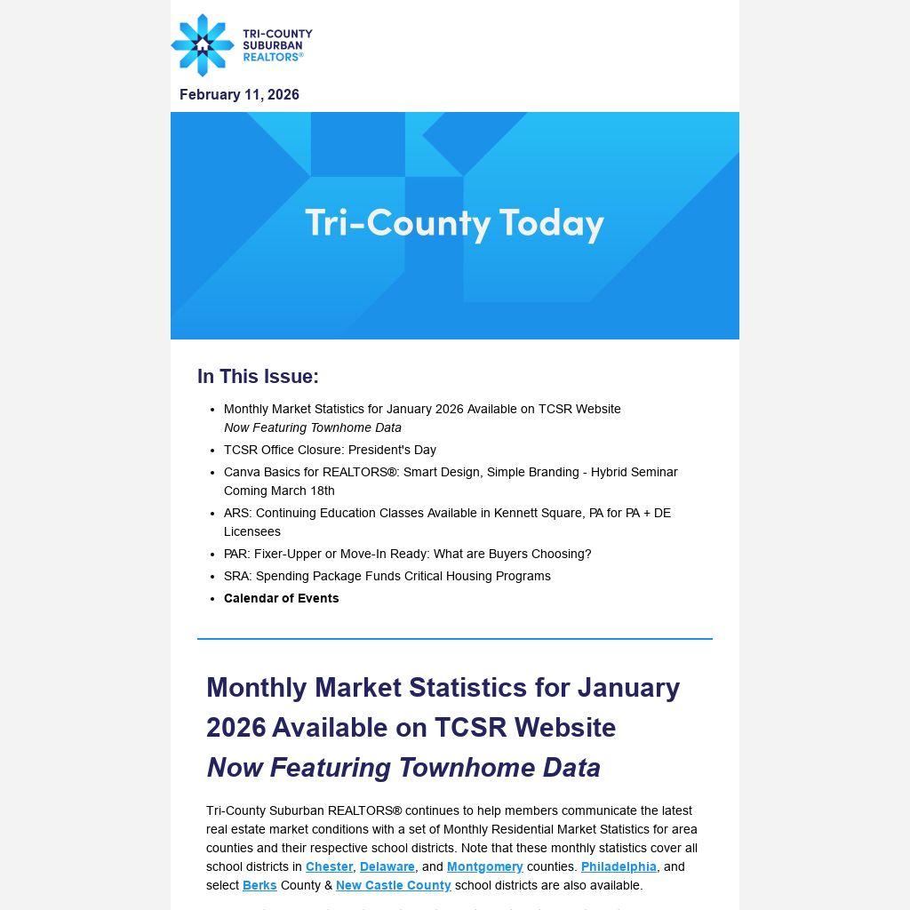 - Monthly Market Statistics for January 2026 Available on TCSR Website