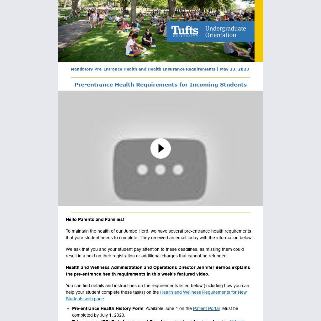 To maintain the health of our Jumbo Herd, we have several pre-entrance health requirements that your student needs to complete. They received an email today with the information below.