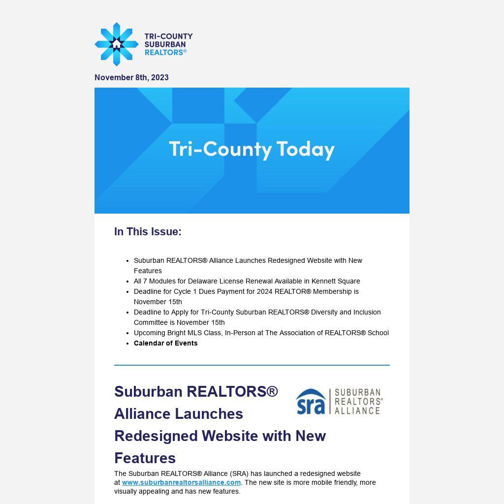 www.suburbanrealtorsalliance.com. The new site is more mobile friendly, more visually appealing and has new features.