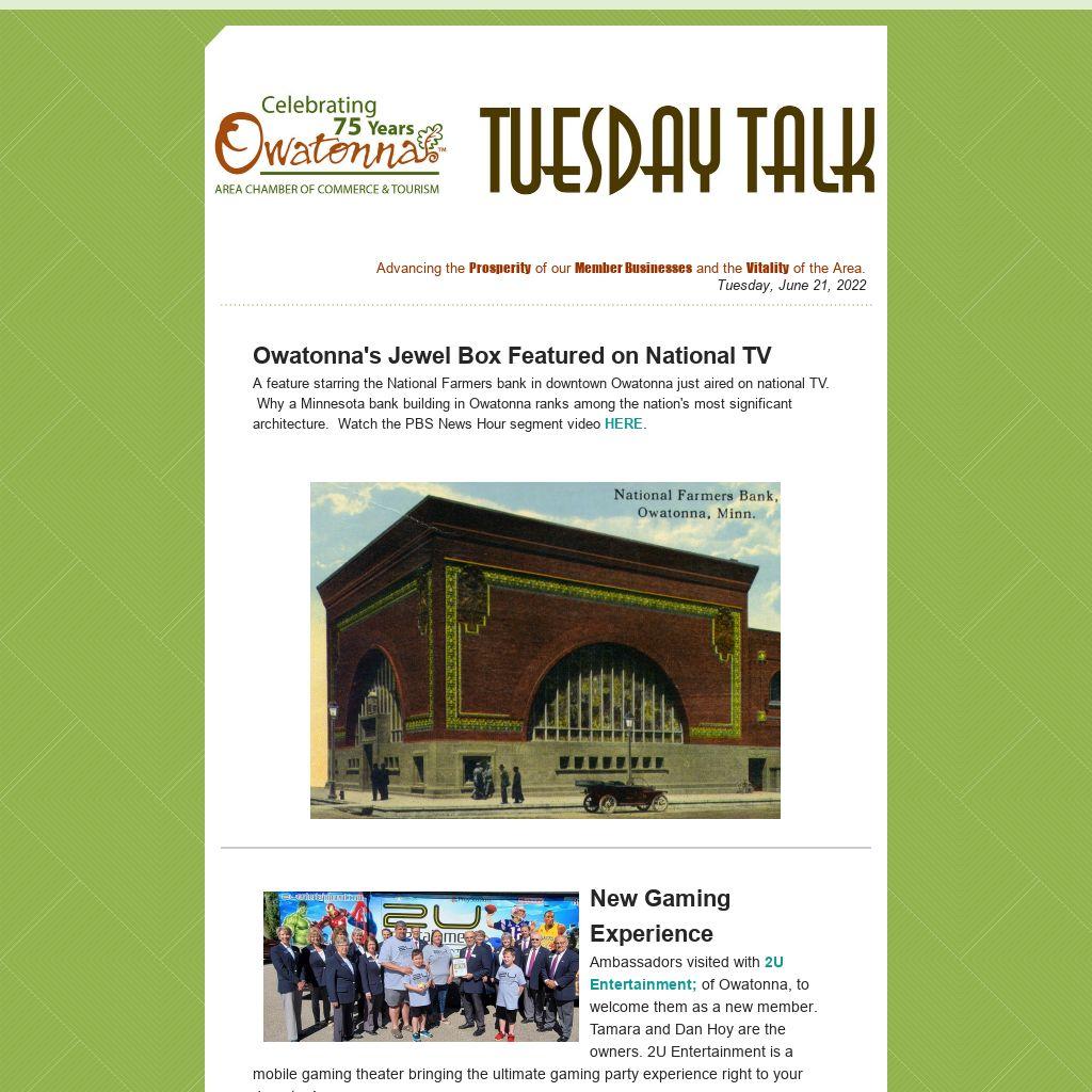 Join us at 5:00-8:30pm for entertainment, food and vendors. And speaking of vendors, look for a list of participating vendors in next week’s Tuesday Talk!