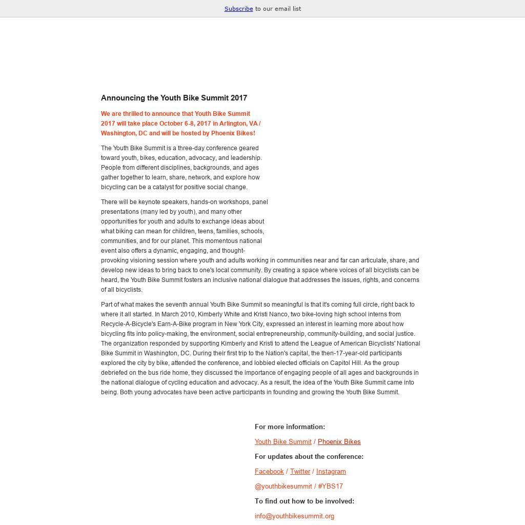 Announcing the Youth Bike Summit 2017