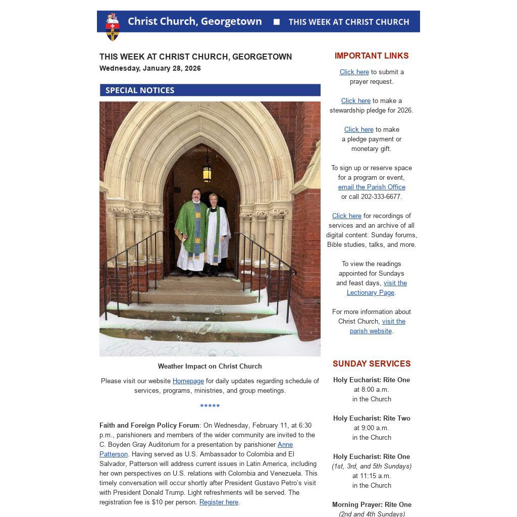 THIS WEEK AT CHRIST CHURCH, GEORGETOWN Wednesday, January 28, 2026