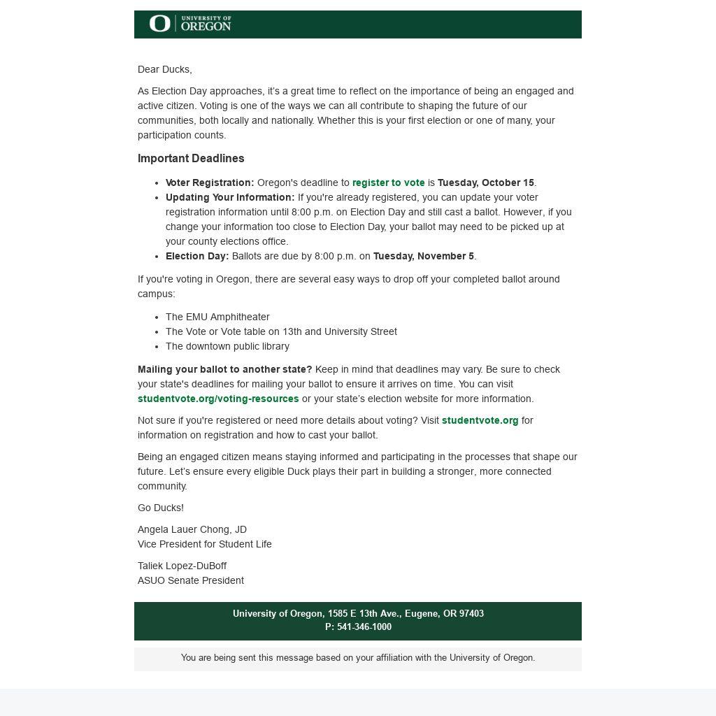 Being an engaged citizen means staying informed and participating in the processes that shape our future. Let’s ensure every eligible Duck plays their part in building a stronger, more connected community.
