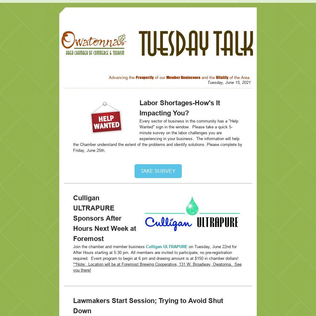 Tournament is scheduled for Tuesday, August 3, 2021 at the Owatonna Country Club. Registration at 9 am, shotgun start at 10 am.