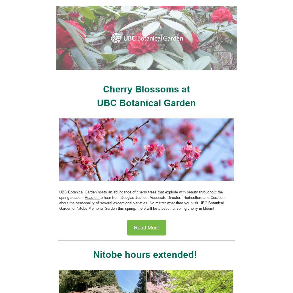 UBC Botanical Garden: Tuesday-Sunday 10:00am - 4:30pm April 2nd