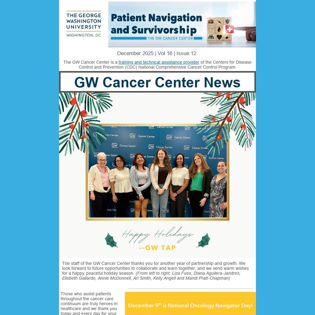 The GW Cancer Center is a training and technical assistance provider of the Centers for Disease Control and Prevention (CDC) National Comprehensive Cancer Control Program.