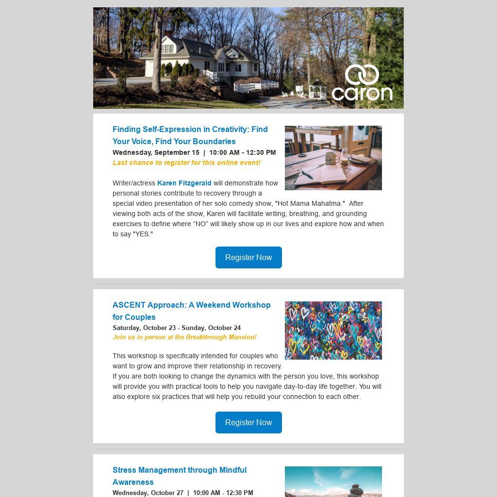 Writer/actress Karen Fitzgerald will demonstrate how personal stories contribute to recovery through a special video presentation of her solo comedy show, "Hot Mama Mahatma." After viewing both acts of the show, Karen will facilitate writing, breathing, and grounding exercises to define where “NO” will likely show up in our lives and explore how and when to say "YES."