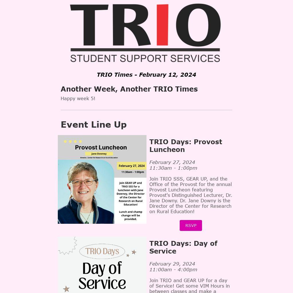 We are going to start doing a monthly student spotlight in the TRIO Times! If you are interested in being in the spotlight, please fill out the form on the TRIO Website!
