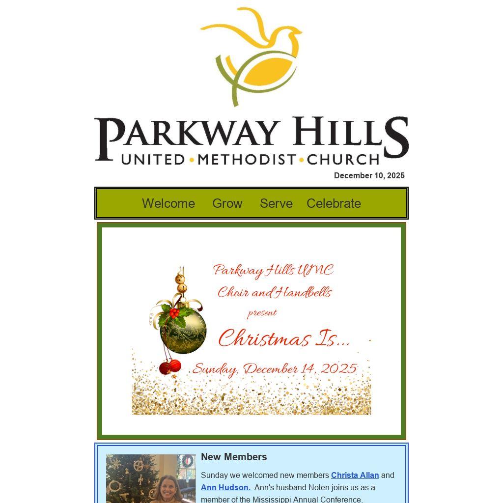 Help us provide a welcoming and meaningful worship experience this Christmas season at Parkway Hills. Your presence is part of how we share and celebrate the story of Emmanuel, God with us, with those who will gather in worship with us.
