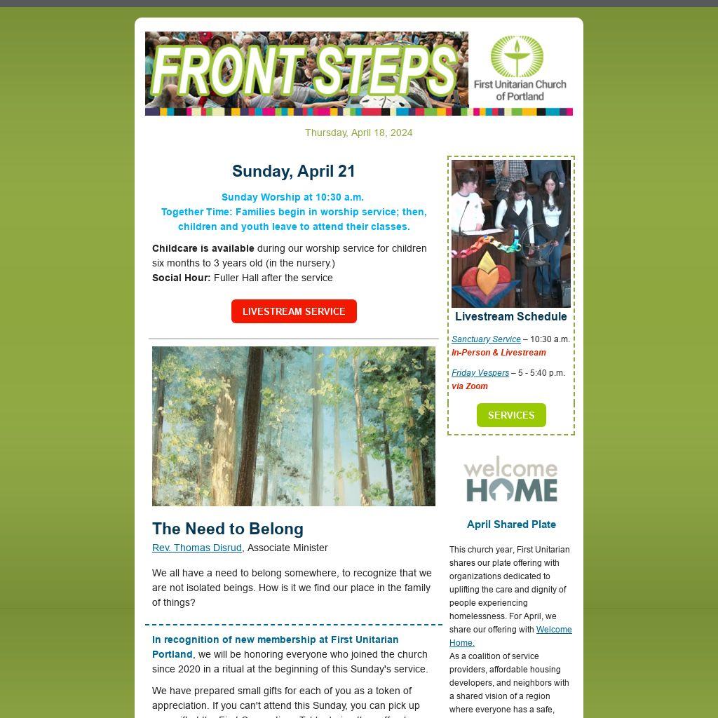 Got something for Front Steps? Send in your church-related submission for our weekly publication. Use "Front Steps" as the subject line and submit here. Deadline: Tuesdays at noon.