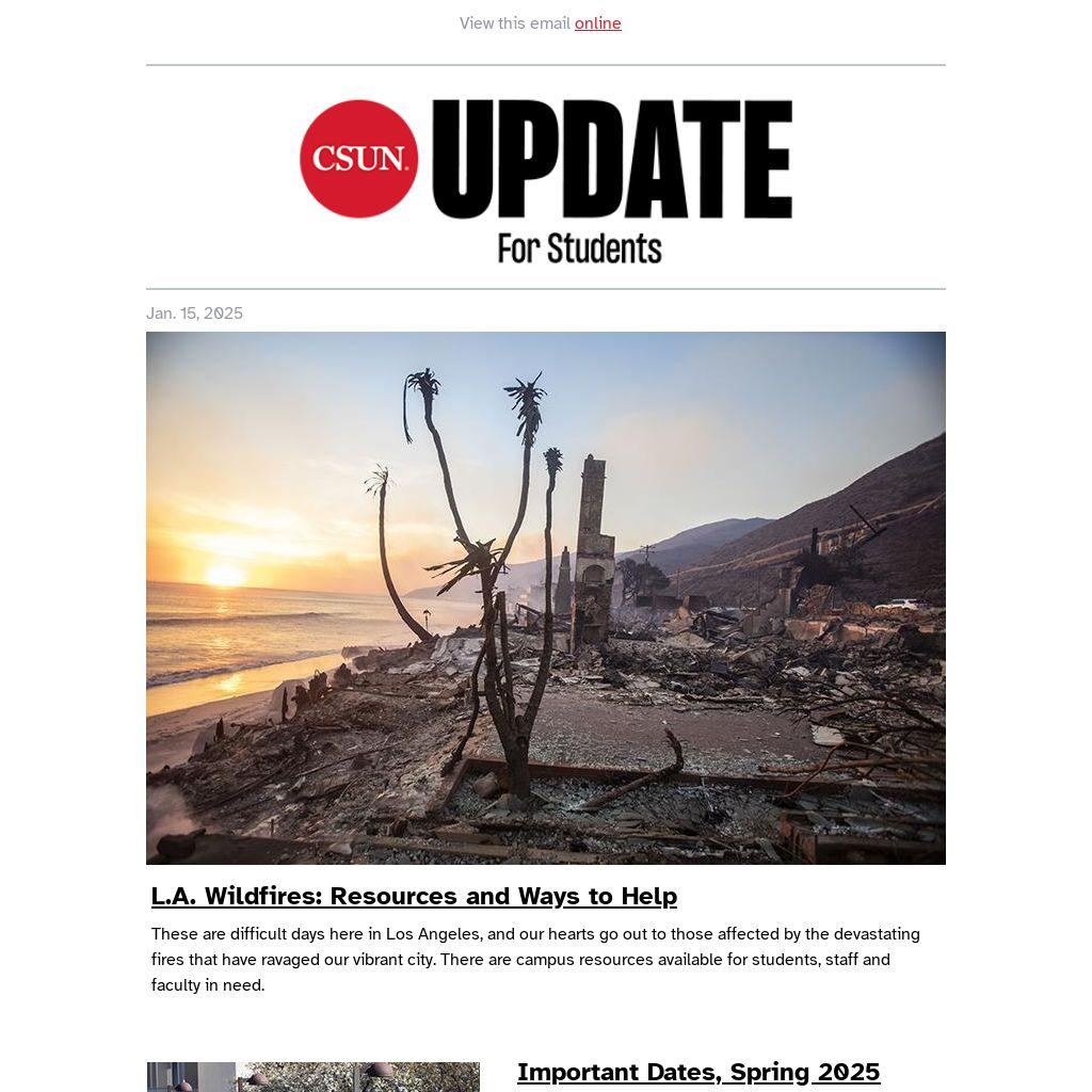 These are difficult days here in Los Angeles, and our hearts go out to those affected by the devastating fires that have ravaged our vibrant city. There are campus resources available for students, staff and faculty in need.