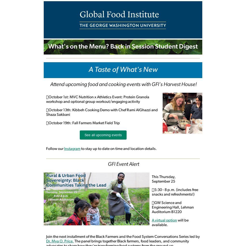 We want to lift up your work and share information about events, and opportunities to collaborate. Email us at globalfoodinstitute@gwu.edu.