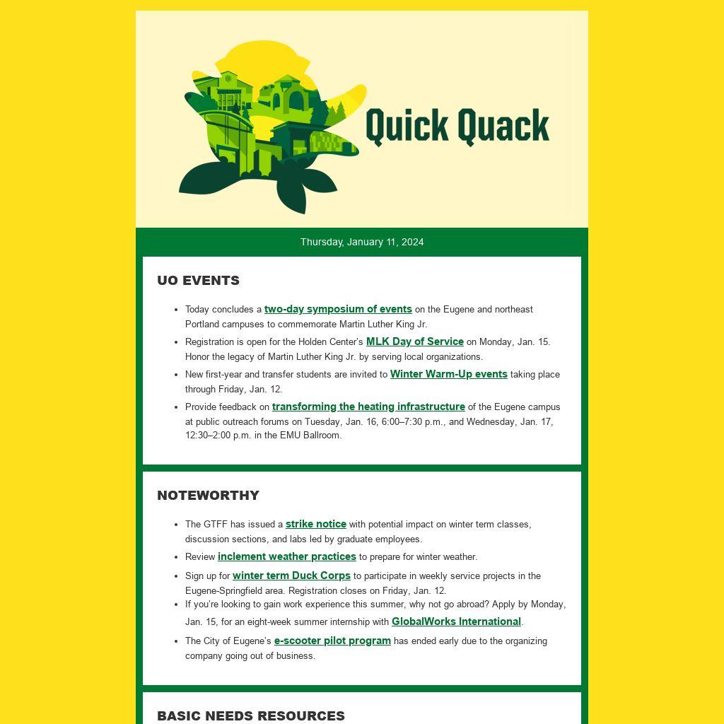 Sign up for winter term Duck Corps to participate in weekly service projects in the Eugene-Springfield area. Registration closes on Friday, Jan. 12.