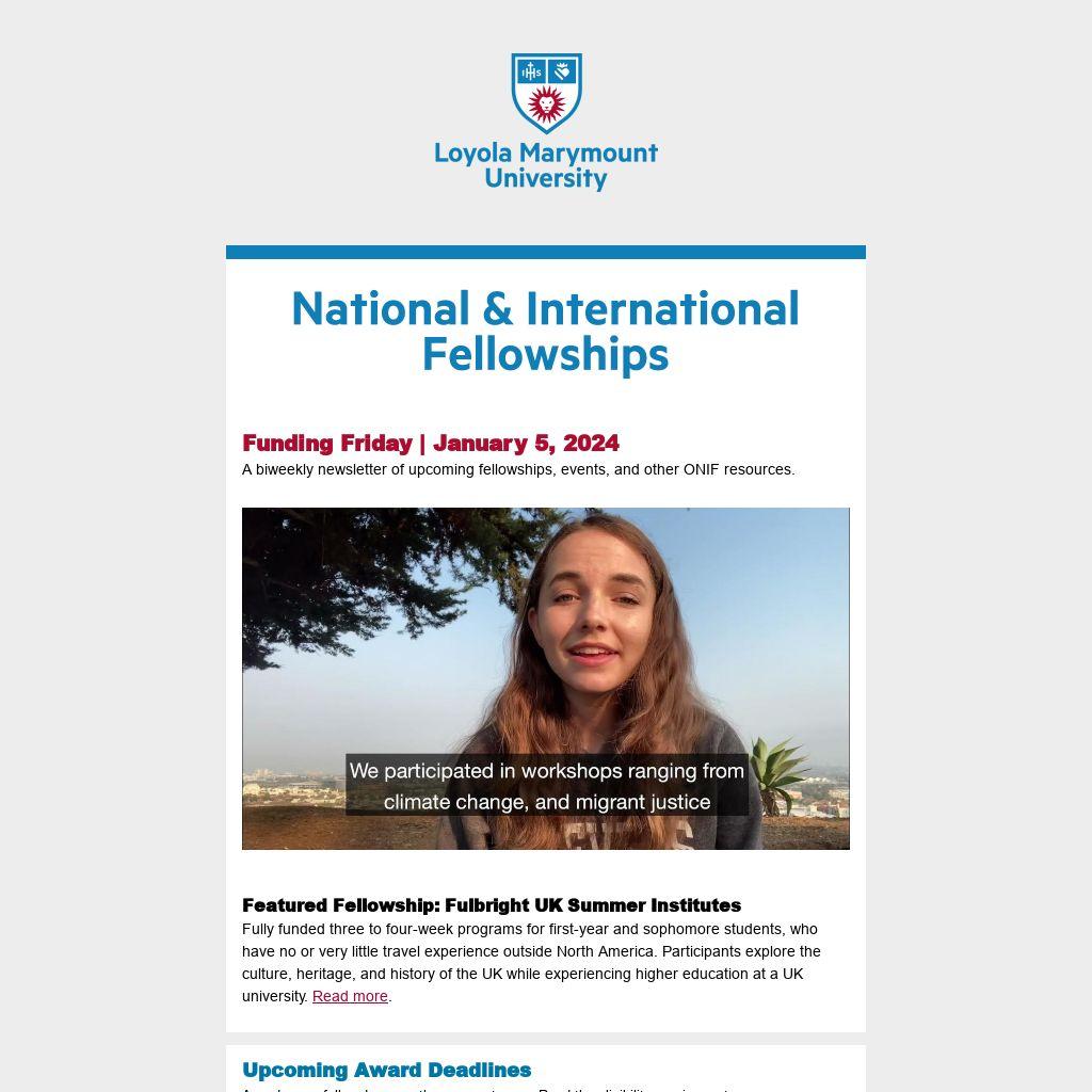 A biweekly newsletter of upcoming fellowships, events, and other ONIF resources.
