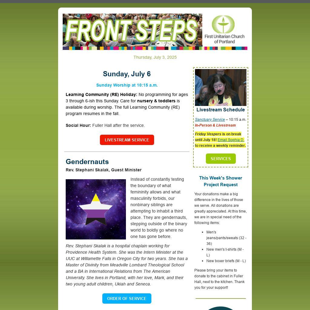 Enjoyed coming to gatherings at First Unitarian Portland? Consider contributing to sustaining our community. Your support goes a long way in fostering meaningful connections. Thank you!