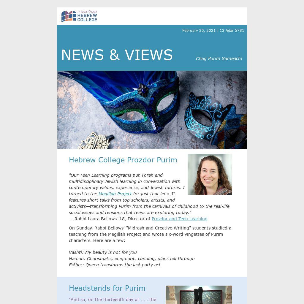 "Our Teen Learning programs put Torah and multidisciplinary Jewish learning in conversation with contemporary values, experience, and Jewish futures. I turned to the Megillah Project for just that lens. It features short talks from top scholars, artists, and activists—transforming Purim from the carnivals of childhood to the real-life social issues and tensions that teens are exploring today." — Rabbi Laura Bellows`18, Director of Prozdor and Teen Learning