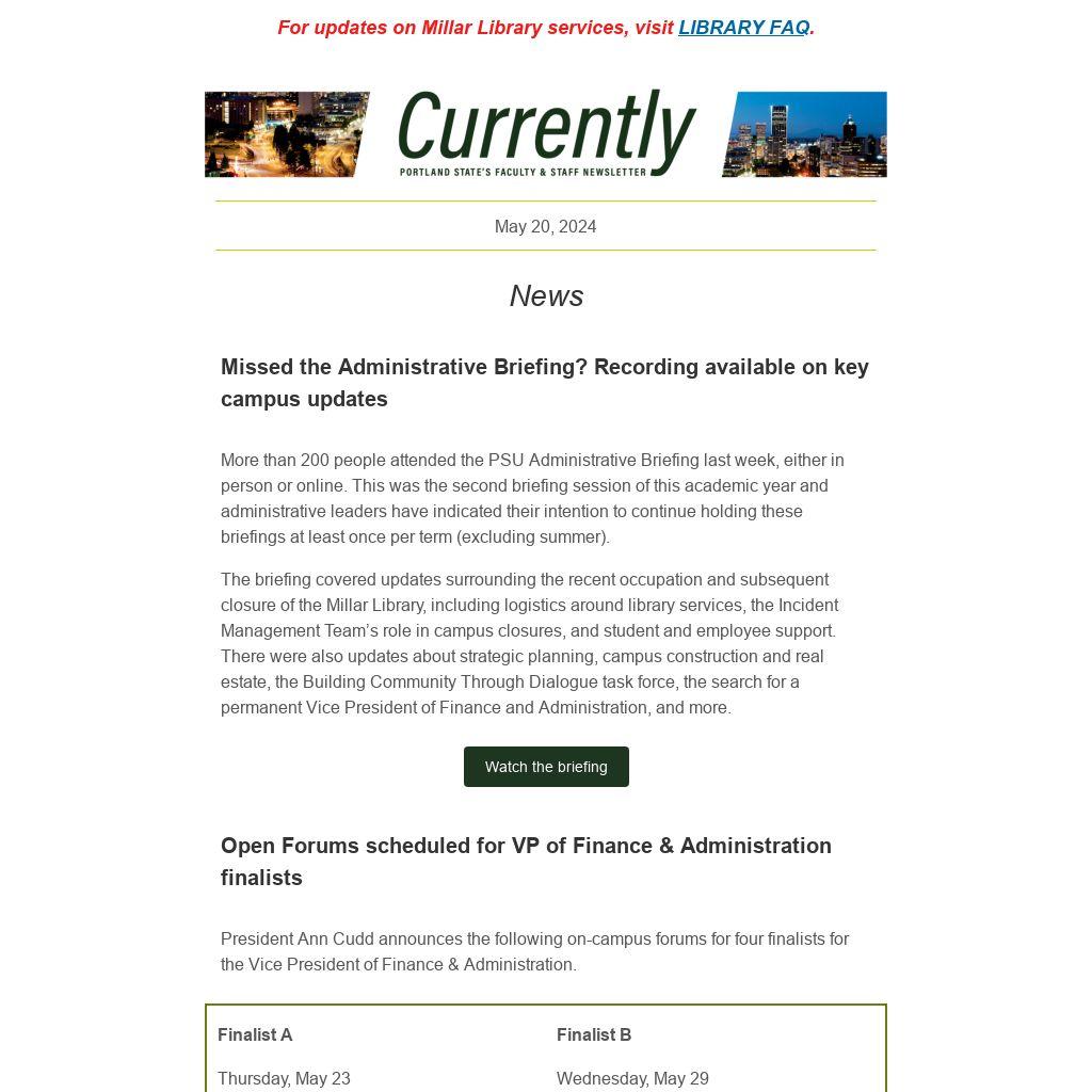 Missed the Administrative Briefing? Recording available on key campus updates |