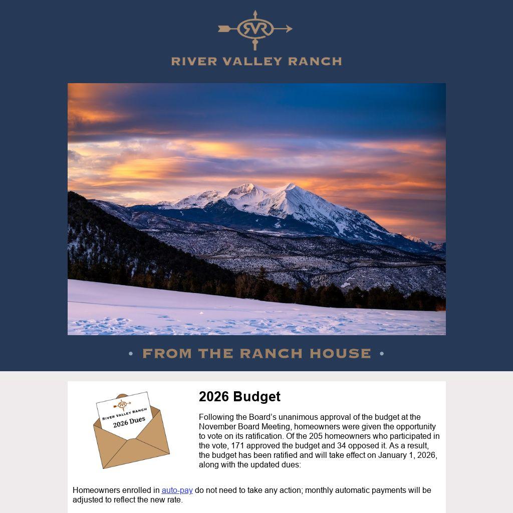 Following the Board’s unanimous approval of the budget at the November Board Meeting, homeowners were given the opportunity to vote on its ratification. Of the 205 homeowners who participated in the vote, 171 approved the budget and 34 opposed it. As a result, the budget has been ratified and will take effect on January 1, 2026, along with the updated dues: