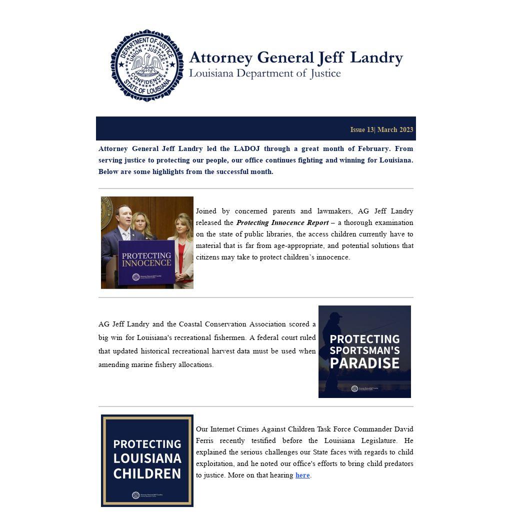 Joined by concerned parents and lawmakers, AG Jeff Landry released the Protecting Innocence Report – a thorough examination on the state of public libraries, the access children currently have to material that is far from age-appropriate, and potential solutions that citizens may take to protect children’s innocence.