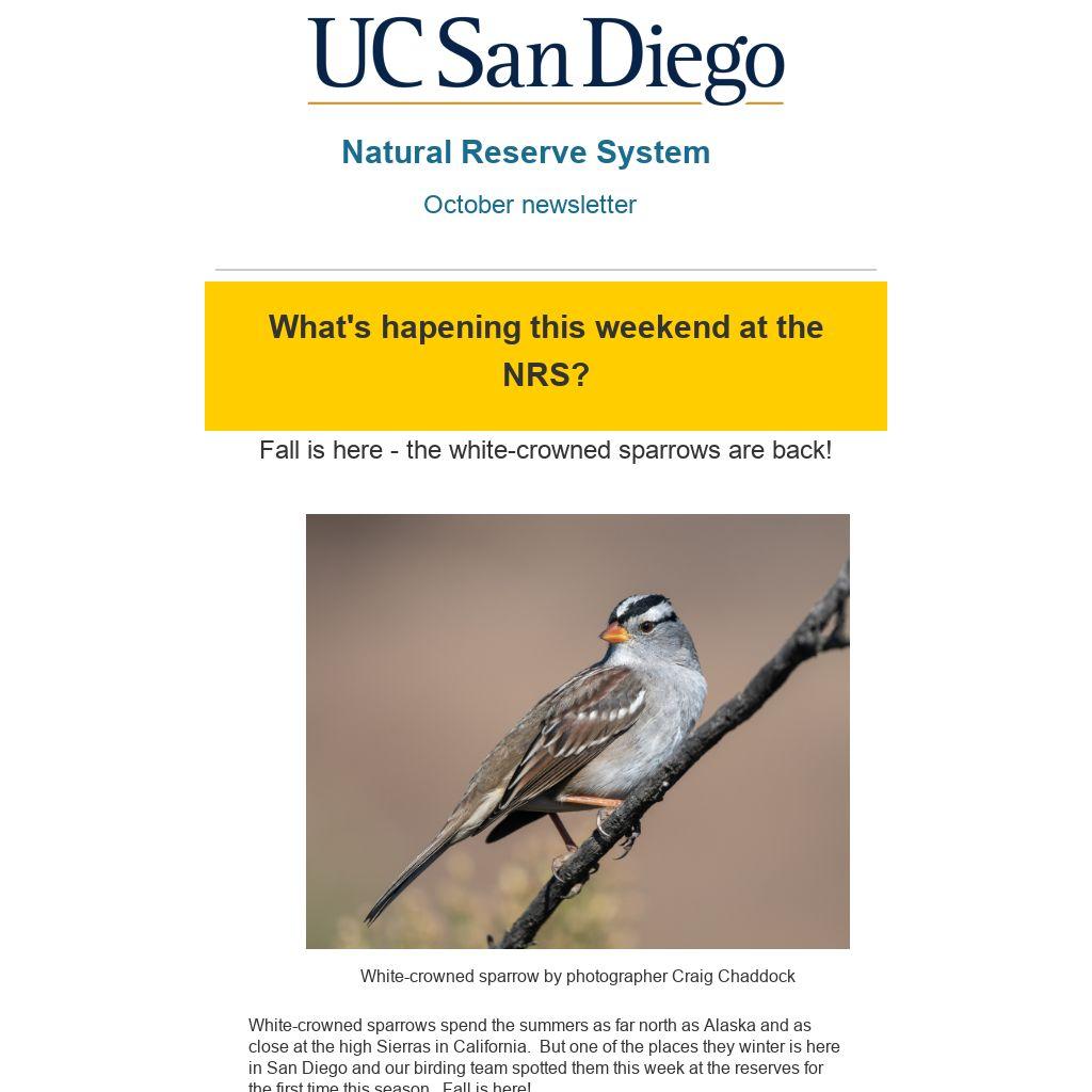 White-crowned sparrows spend the summers as far north as Alaska and as close at the high Sierras in California. But one of the places they winter is here in San Diego and our birding team spotted them this week at the reserves for the first time this season. Fall is here!