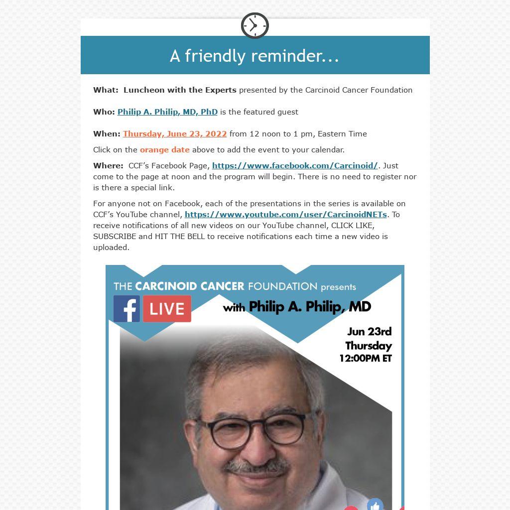 What:  Luncheon with the Experts presented by the Carcinoid Cancer Foundation